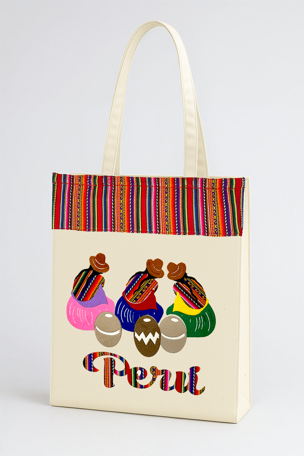 Material:Heavy-duty raw cotton canvas. Decoration:Andean blanket woven on a traditional loom. Handles:Reinforced handles for greater...