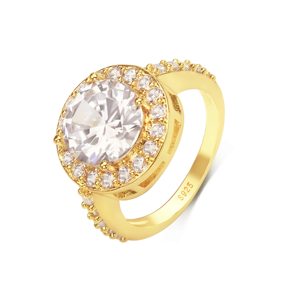 DESCRIPTION: A graceful gold-plated sterling silver ring (S925) featuring a brilliant oval-cut center stone, complemented...