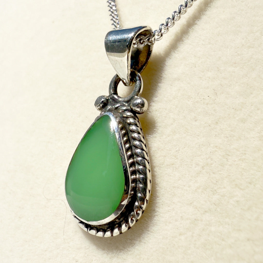 Necklace featuring a natural jade pendant set in 950 sterling silver, paired with a 925 silver chain. A piece that symbolizes calm, purity, and protection—perfect for those seeking balance and positive energy.
