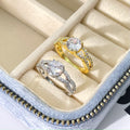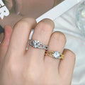 This elegant ring symbolizes unity and everlasting love with its intricate crisscross design, where two paths entwine to become one. The centerpiece features a brilliant round-cut stone that captures the light, representing a shining promise or cherished memory.