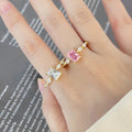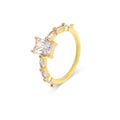 This stunning gold-plated ring features a sophisticated design with a modern twist. The central princess-cut stone, surrounded by delicate side crystals, reflects light beautifully, creating a dazzling sparkle. Crafted with high-quality materials, this piece is perfect for adding a touch of glamour to any outfit or occasion.