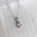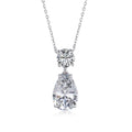 This elegant necklace features a teardrop symbolizing elegance, purity and personal growth. The teardrop-shaped stone represents deep emotions and sophistication. It suggests evolution and achievement. Ideal as a gift or for personal use, this necklace captures the essence of love and emotional connection. A refined design with a dangling teardrop-shaped stone, accompanied by a round stone, all mounted on a delicate chain.