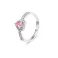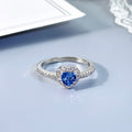 This white gold ring showcases a heart-shaped blue gemstone, complemented by a half-pave setting that enhances its deep color and brilliance. A perfect blend of elegance, romance, and timeless charm.